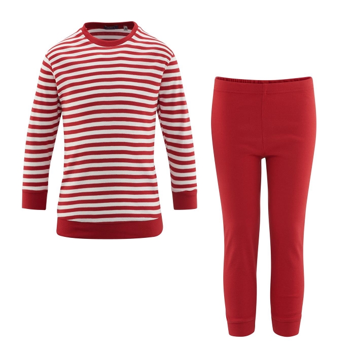 Denne pyjamasen er i komfortabelt og tøyelig stoff av ren, økologisk bomull. God og lun hele året. Mansjetter i hals, ermer og legger inneholder 5% bomullsdekket elastan for å sikre at plaggene beholder formen.